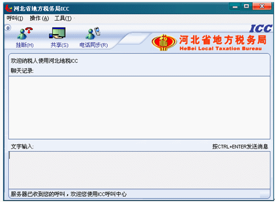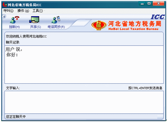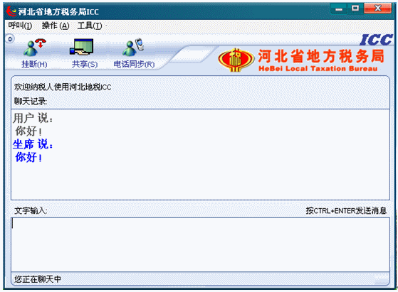 輸入完畢后,點擊OK按鈕,這時納稅人的ICC呼叫已經(jīng)轉(zhuǎn)到正在和納稅人通話的座席了。接下來的使用遵循7~10的使用規(guī)則。