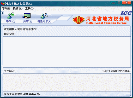 如要掛斷后重新呼叫,請稍等片刻再重新呼叫。如果過早重新點擊共享按鈕,ICC界面左下角狀態(tài)欄文字提示“系統(tǒng)正在處理中,請稍后再點擊”?吹酱颂崾,請稍候再點擊呼叫按鈕。如下圖所示: