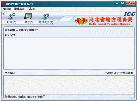 7.等待座席應(yīng)答后,左下角的狀態(tài)欄文字提示首先變?yōu)椤澳F(xiàn)在可以與對方進(jìn)行文本交談了”,從現(xiàn)在開始到納稅人掛斷呼叫期間,納稅人就可以和座席進(jìn)行文本交談了。