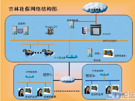 吉林社保12333電話咨詢平臺采用AVAYA8720交換機,商路通Hi-Link呼叫中心中間件,4E1中繼接入,70個IP座席,120路IVR,70路座席錄音。該方案的核心是在全省范圍內(nèi)建立一套統(tǒng)一接入,集中控制的呼叫中心平臺,省內(nèi)的全部電話呼叫統(tǒng)一接入省級機構(gòu)的平臺,借助IP網(wǎng)絡對省、市州的各級坐席進行統(tǒng)一的呼叫分配、錄音等管理。