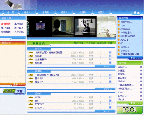 隨著互聯(lián)網(wǎng)在中國(guó)的普及和網(wǎng)絡(luò)基礎(chǔ)建設(shè)的完善,越來越多的人開始上網(wǎng),隨之而來的就是各種網(wǎng)絡(luò)服務(wù)的大行其道,我們就來看看最近很火的網(wǎng)絡(luò)視頻點(diǎn)播VOD。領(lǐng)導(dǎo)下命令,對(duì)目前視頻點(diǎn)播產(chǎn)品做一個(gè)評(píng)估,沒有辦法,只有照辦。既然要評(píng)論自然要找最好的來感受一下。南京遠(yuǎn)古的Web VOD5.0。在技術(shù)上較為領(lǐng)先,根據(jù)南京遠(yuǎn)古官方宣布,該系統(tǒng)可以達(dá)到1000并發(fā)。十分好奇,終于托人找到了體驗(yàn)版本。