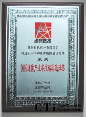 科達(dá)KDV7910獲2009年度“編輯選擇獎”