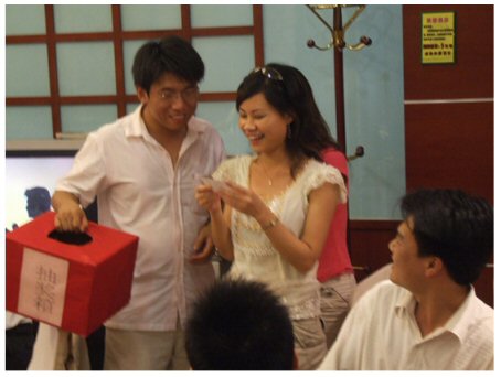 在聚餐接近尾聲的時(shí)候開(kāi)始了激動(dòng)人心的抽獎(jiǎng)活動(dòng),本次共產(chǎn)生8個(gè)大獎(jiǎng)。每個(gè)中獎(jiǎng)同仁都獻(xiàn)歌一曲,從而使活動(dòng)的氣氛達(dá)到了高潮。