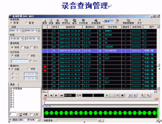- 可按日期、時(shí)間、電話號(hào)碼、線路、人員等條件進(jìn)行查詢(xún)放音;支持語(yǔ)音卡放音、聲卡放音等。