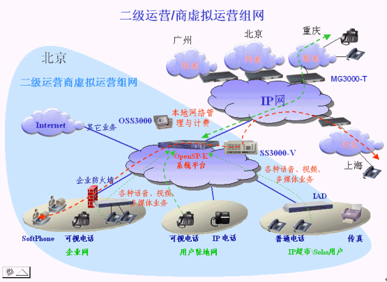 對于希望投資低啟動快的虛擬運營商,我們設(shè)計了mindSYS解決方案。在mindSYS解決方案中,以SS3000-V作為核心的呼叫控制、業(yè)務(wù)管理和計費平臺,配合中繼網(wǎng)關(guān)MG3000-T以及眾多的接入終端,組成一個完整的解決方案。該方案可以滿足虛擬運營商的初期業(yè)務(wù)發(fā)展,有強大的組網(wǎng)適應(yīng)性和良好的管理計費功能,并具備極好的可擴展性,可以根據(jù)用戶的業(yè)務(wù)發(fā)展,平滑升級到更強大的增值業(yè)務(wù)、運營管理計費平臺--OpenSP-K平臺,無縫過渡到完善的大規(guī)模虛擬運營解決方案。
