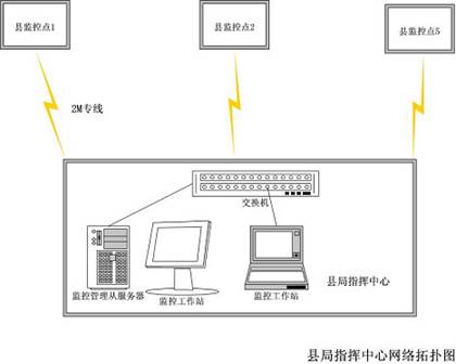 指揮中心設(shè)置一臺PC機安裝服務(wù)器端軟件作為監(jiān)控系統(tǒng)管理從服務(wù)器。同時,配置兩臺PC機安裝客戶端軟件作為監(jiān)控工作站。監(jiān)控管理員通過監(jiān)控工作站,實時監(jiān)視前端監(jiān)控點視頻圖像,遠程控制一體化球機。