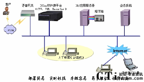 從產(chǎn)品上總結(jié),這四個階段,分別是人工熱線電話系統(tǒng),交互式語音自動應(yīng)答系統(tǒng)、兼有自動語音和人工服務(wù)的客戶系統(tǒng)、網(wǎng)絡(luò)多媒體客服系統(tǒng)。在前兩個階段,其實(shí)是圍繞著PBX(Private Branch Exchang)做文章的;隨后的第三階段,出現(xiàn)了所謂的CTI。在CTI階段,呼叫中心無論從業(yè)務(wù)功能、業(yè)務(wù)流程上都得到巨大的發(fā)展。而第四階段的網(wǎng)絡(luò)多媒體客服系統(tǒng),目前還在起步階段,處在發(fā)展之中。隨著“Everything Over IP”的發(fā)展,呼叫中心的這個發(fā)展趨勢也深深烙上了IP的痕跡。