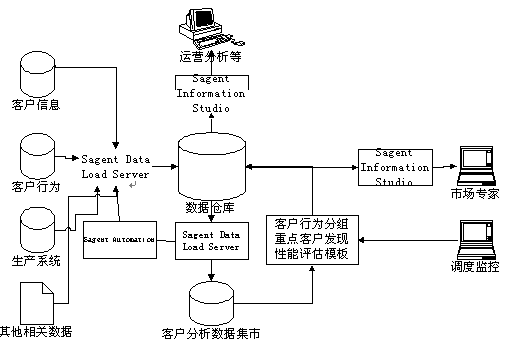 易虹eCRM解決方案,采用Sagent Real Time e-Business Solution作為數(shù)據(jù)倉(cāng)庫(kù)建設(shè)平臺(tái)。Sagent Solution提供了數(shù)據(jù)倉(cāng)庫(kù)建設(shè)、數(shù)據(jù)分析和數(shù)據(jù)倉(cāng)庫(kù)管理的全套的工具。利用這些工具,用戶(hù)可以快速地實(shí)現(xiàn)數(shù)據(jù)倉(cāng)庫(kù)和客戶(hù)分析系統(tǒng)。