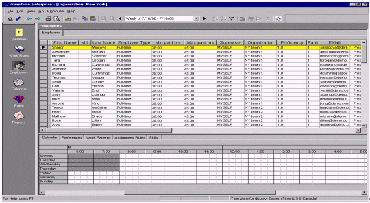除個(gè)人信息以外,還有每個(gè)人的技巧應(yīng)用能力和工作效率也必須要記錄在系統(tǒng)之中,工作日程和預(yù)測(cè)模型的制定是否合理主要看員工的工作時(shí)間和工作效率。圖6展示的就是典型的員工排班界面。這些信息使用了ACD的數(shù)據(jù),預(yù)測(cè)某個(gè)技能組在特定的時(shí)間需要多少個(gè)員工才能應(yīng)付預(yù)測(cè)出的電話量。WFMS系統(tǒng)可以通過各種不同的渠道來體現(xiàn)和存儲(chǔ)這些人員信息。