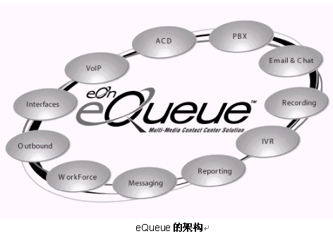 正是基于這樣一種能夠最終實(shí)現(xiàn)雙贏的合作模式,美國益昂通訊公司(eOn communications)可以準(zhǔn)確地把握聯(lián)絡(luò)中心市場(chǎng)未來技術(shù)發(fā)展的方向,開發(fā)出了適應(yīng)未來技術(shù)發(fā)展要求的、全面的聯(lián)絡(luò)中心解決方案───eQueue多媒體聯(lián)絡(luò)中心解決方案。
