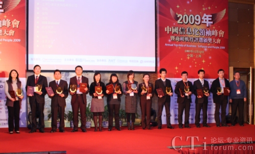 CTI論壇(ctiforum)12月15日消息(記者 張塵):12月10日,“2009中國(guó)信息化領(lǐng)袖峰會(huì)暨商用軟件評(píng)選頒獎(jiǎng)大會(huì)”在上海東錦江索菲特大酒店隆重召開。此次會(huì)議以軟件行業(yè)協(xié)會(huì)為指導(dǎo)單位,由暢享網(wǎng)主辦,AMT集團(tuán)及德賽網(wǎng)協(xié)辦,并得到上海浦東軟件園的特別支持,通過歷時(shí)三個(gè)多月的調(diào)查研究和評(píng)選,結(jié)果于當(dāng)日揭曉。