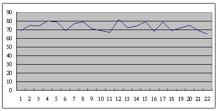 這是另外一個(gè)呼叫中心的服務(wù)水平,也是從早上8點(diǎn)開始,一直到晚上6點(diǎn),每隔半個(gè)小時(shí)的服務(wù)水平趨勢(shì)。雖然平均服務(wù)水平也是在73左右,但震蕩幅度卻小了很多,服務(wù)水平只在81到68這中間震蕩。