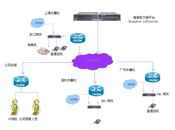 方案中,在公司總部架設(shè)一臺(tái)海狼IPPBX設(shè)備,公司總部需要有公網(wǎng)IP地址和公網(wǎng)保持連接。在各地辦事處只需在各地配備:帶FXO口的語(yǔ)音網(wǎng)關(guān),就可通過(guò)internet配合海狼網(wǎng)絡(luò)IP-PBX將當(dāng)?shù)乜头娫捵詣?dòng)轉(zhuǎn)入到總公司的客服電話上,這樣,公司的客服人員即可在本地實(shí)現(xiàn)對(duì)異地用戶的貼身服務(wù),而客戶并不能察覺(jué),卻享受到了相當(dāng)于本地的服務(wù)。既可以為客戶及時(shí)解決問(wèn)題,讓用戶感覺(jué)技術(shù)人員就在本地,同時(shí)也為公司節(jié)省通信費(fèi)用和人力方面的投資。本方案為公司提供的功能: