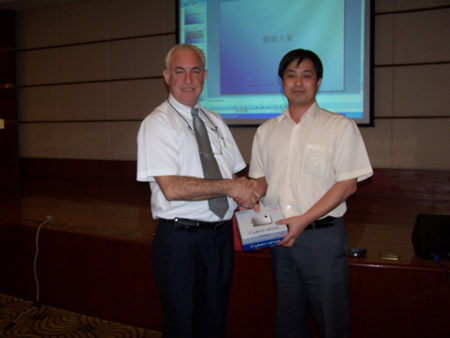 圖為北京站研討會一角及一等獎(T33數(shù)碼相機)中獎者與Dana先生合影。