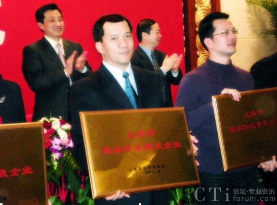 CTI論壇(ctiforum)1月27日消息(記者 張塵):2010年1月20日,上海市商務(wù)委員會(huì)舉行服務(wù)外包示范區(qū)和重點(diǎn)企業(yè)授牌儀式,上海市副市長(zhǎng)唐登杰親臨會(huì)場(chǎng),并向陸家嘴軟件園、長(zhǎng)寧軟件園、天地軟件園三家專(zhuān)業(yè)園區(qū)以及44家服務(wù)外包重點(diǎn)企業(yè)授牌。