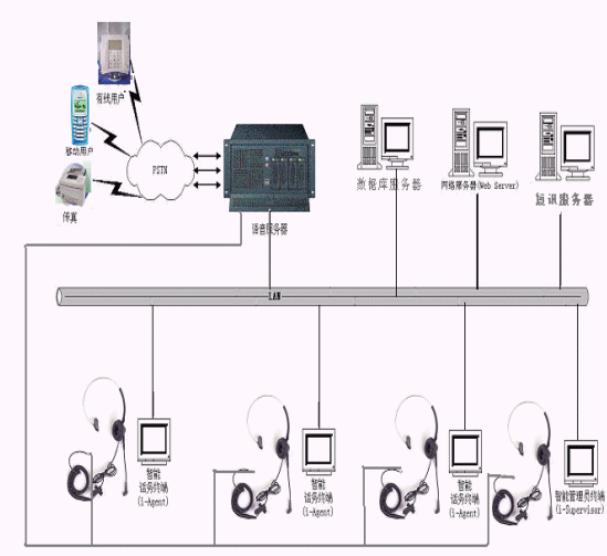 一類是基于傳統(tǒng)的PBX方式,為專用排隊機結(jié)構(gòu),該結(jié)構(gòu)基于自動話務分配,稱為交換機解決方案另一類是基于unPBX方式,為工控智能交換平臺結(jié)構(gòu),主要基于工控機和語音板卡,稱為工控機解決方案