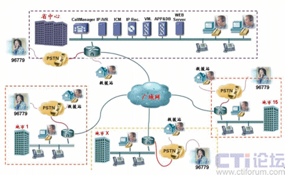 如上圖所示,由于Cisco IPCC是基于標準IP網(wǎng)絡(luò)的純IP呼叫中心解決方案,呼叫中心的核心設(shè)備都只部署在省中心機房,其它地市只需要在原有網(wǎng)絡(luò)的路由器上添加語音模塊即可實現(xiàn)PSTN語音的本地接入,而無需再各地市購買額外的接入設(shè)備。而同樣由于IP網(wǎng)絡(luò)的特性,呼叫中心的坐席可以根據(jù)需要部署在甘肅省運輸管理局IP網(wǎng)絡(luò)可達的任何一個地方,各地市的坐席只需要配備IP電話和座席PC即可。來自PSTN的電話根據(jù)用戶在IVR中的選擇和其它路由策略,自動分配到最適合的坐席處理,譬如來自白銀的運政投訴由白銀市本地的運政大廳座席人員處理。