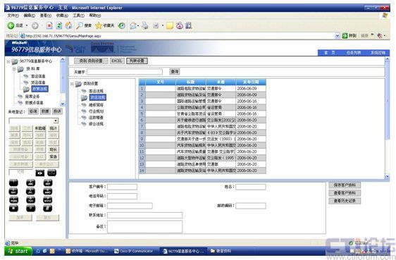 正音科技結合甘肅省運輸管理局的現(xiàn)實,提出了以人性化服務為著眼點,綜合利用互聯(lián)網、語音電話、短消息等信息工具,提供多形式、多手段、全方位、跨時空的在線服務。整個解決方案采用業(yè)界最先進的Cisco 新一代IP客戶聯(lián)絡中心技術和正音科技針對交通行業(yè)開發(fā)的“交通行業(yè)96779綜合軟件系統(tǒng)”,充分利用現(xiàn)有IP網絡,將自動語音查詢、人工座席服務、信息資料處理、自動短信查詢緊密結合起來,提供7×24小時不間斷服務。系統(tǒng)建成后,用戶可以通過手機、電話、短信、網絡聯(lián)系運輸管理局,即可獲得道路運輸相關咨詢服務和遠程維修救援服務,也可隨時對行業(yè)管理和行業(yè)經營中發(fā)現(xiàn)的問題進行投訴和舉報。