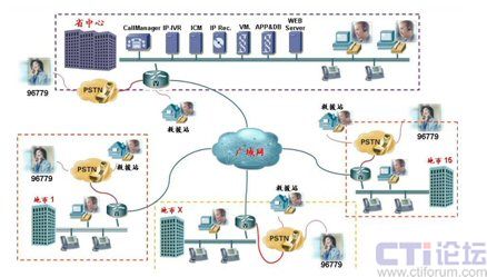 如上圖所示,由于Cisco IPCC是基于標準IP網絡的純IP呼叫中心解決方案,呼叫中心的核心設備都只部署在省中心機房,其它地市只需要在原有網絡的路由器上添加語音模塊即可實現(xiàn)PSTN語音的本地接入,而無需再各地市購買額外的接入設備。而同樣由于IP網絡的特性,呼叫中心的坐席可以根據需要部署在甘肅省運輸管理局IP網絡可達的任何一個地方,各地市的坐席只需要配備IP電話和座席PC即可。來自PSTN的電話根據用戶在IVR中的選擇和其它路由策略,自動分配到最適合的坐席處理,譬如來自白銀的運政投訴由白銀市本地的運政大廳座席人員處理。