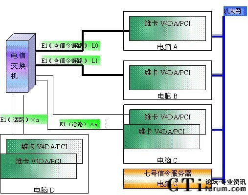 在圖中描述了架設(shè)了七號信令服務(wù)器以后,比較典型的應(yīng)用構(gòu)架。