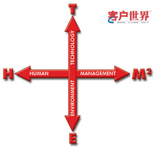 THEM2方法把呼叫中心看成是由技術(shù)(Technology)、人(Human)、環(huán)境(Environment)、管理(Management)組成的整體。這個(gè)方法的圖示是一個(gè)十字架(見圖一),M之上的2字的意思是說,所考慮的管理包括戰(zhàn)略管理(Strategic Management)和運(yùn)營管理(Operational Management)兩個(gè)層面。
