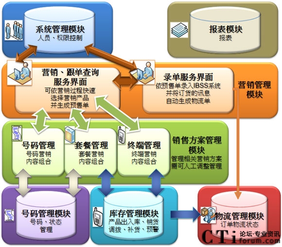運(yùn)營管理系統(tǒng)的模塊主要由七個(gè)組成:系統(tǒng)管理模塊、營銷管理模塊、銷售方案管理模塊、號(hào)碼管理模塊、庫存管理模塊、物流管理模塊和報(bào)表模塊。