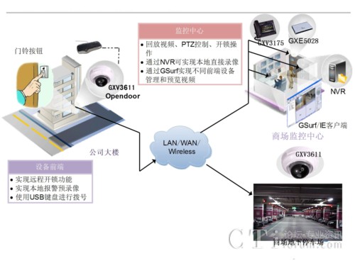 為了方便商場店主以及購物顧客,Millennium Mall商場內(nèi)設(shè)計(jì)了一個(gè)6層的地下停車場,商場管理員通過網(wǎng)絡(luò)攝像機(jī)監(jiān)控和監(jiān)督停車費(fèi)收納員,通常到商場購物的顧客會(huì)提前預(yù)存一定的停車費(fèi)用。潮流網(wǎng)絡(luò)GXV3611網(wǎng)絡(luò)半球形網(wǎng)絡(luò)攝像機(jī),GXV3601高清網(wǎng)絡(luò)攝像機(jī)分布安裝在商場以及地下停車場關(guān)鍵角落,每周全天7x24小時(shí)的監(jiān)控,隨時(shí)、隨地、多種終端的實(shí)時(shí)視頻觀看。潮流網(wǎng)絡(luò)GXV3140、GXV3175多媒體視頻電話則安裝在商場室內(nèi),結(jié)合QuadroM32x門禁系統(tǒng)作為IP方案的擴(kuò)展,并只允許商場停車費(fèi)出納員通過視頻話機(jī)控制網(wǎng)絡(luò)攝像機(jī)。當(dāng)門禁系統(tǒng)被觸發(fā)時(shí),視頻電話和攝像機(jī)視頻流將實(shí)時(shí)抓拍畫面和錄像,并立即將視頻流和抓拍畫面直接傳輸反饋到保衛(wèi)安全科辦公室或指定的相關(guān)安全部門,幫助第一時(shí)間解決威脅,避免商場財(cái)產(chǎn)和人員受到破壞或損傷。當(dāng)然,商場職工也可通過潮流網(wǎng)絡(luò)視頻電話或者手中的智能手機(jī)撥打呼叫網(wǎng)絡(luò)攝像機(jī),觀看監(jiān)控畫面和雙向語音對話。例如,保衛(wèi)科保安人員或辦公室管理人員定時(shí)使用GXV3140視頻電話撥打GXV系列的網(wǎng)絡(luò)攝像機(jī)監(jiān)控追蹤現(xiàn)場,Grandstream的Gsurf免費(fèi)視頻管理軟件協(xié)助管理,確保停車場收納員的安全。商場通過使用VoIP通信與潮流網(wǎng)絡(luò)的終端安全有效地管理維護(hù)商場的有序運(yùn)行,管理商場。