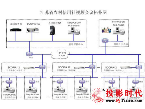 本次設(shè)計方案中,上海索高通過對江蘇農(nóng)信社的全省分布和各地實際需求,提供72套Sony PCS-G50視頻會議終端,IP網(wǎng)絡支持最大4Mbps的視頻傳輸速率,為用戶提供4CIF的高質(zhì)量視頻效果,配合H.264的強大功能一起獲得更高的媒體處理能力。通過Radvision