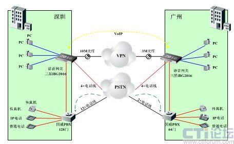 A公司總部設(shè)在深圳,在廣州有分公司。深圳總部目前已有10M光纖到樓作為總出口帶寬,已安裝1臺支持VPN功能的Linksys路由器;語音方面,已申請了16條電話線,并安裝1臺國威128門PBX;廣州也引入了3M光纖作為出口帶寬,和6條電話線作為PSTN外線,已安裝1臺支持VPN功能的Linksys路由器和1臺國威64門PBX。深圳、廣州兩地公司已建立了VPN隧道,以提供有安全保障的數(shù)據(jù)網(wǎng)絡平臺。