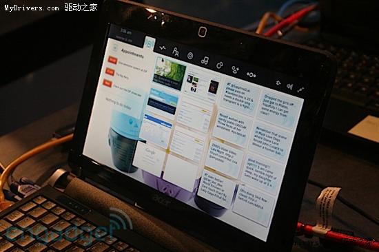 Intel現(xiàn)場展示了安裝了該系統(tǒng)的仁寶MID和宏碁上網(wǎng)本,但并沒有相應的智能手機,而且不允許接觸展品,甚至不讓關掉瀏覽器查看主界面,所以很抱歉沒有試用體驗,但至少看起來很不錯,相當?shù)木隆?br />