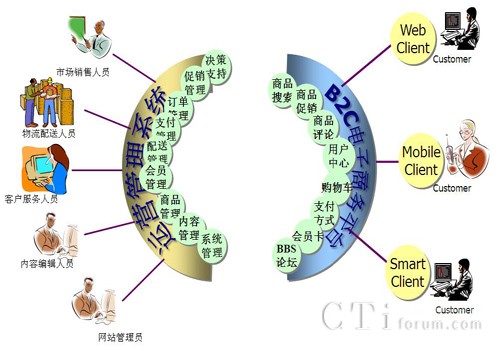 CTI論壇(ctiforum)5月13日消息(記者 張潔):所謂電子商務(wù),事宜先進(jìn)的電子信息化技術(shù)為手段,以商務(wù)營(yíng)銷和服務(wù)為本質(zhì),把原來(lái)傳統(tǒng)的銷售、購(gòu)物渠道移植到互聯(lián)網(wǎng)絡(luò)中,從而達(dá)到高效率運(yùn)作,廣泛接觸受眾,運(yùn)營(yíng)成本降低,服務(wù)多樣化,產(chǎn)品細(xì)分化的良好效果,使生產(chǎn)企業(yè)達(dá)到全球化,網(wǎng)絡(luò)化,無(wú)形化,個(gè)性化、一體化的營(yíng)銷和服務(wù)目的。