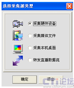我們是利用電視卡來(lái)進(jìn)行遠(yuǎn)教衛(wèi)星電視節(jié)目的校園網(wǎng)絡(luò)實(shí)時(shí)直播,因此選擇“采集硬件設(shè)備”項(xiàng),進(jìn)入硬件設(shè)置,如下圖: