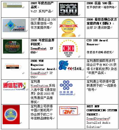 的產(chǎn)品一直在質(zhì)量和易于使用性方面享有盛譽(yù),下面是Polycom音頻產(chǎn)品獲得的部分獎項(xiàng)。
