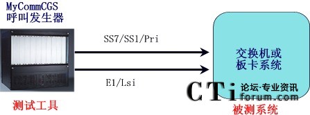 MyCommCGS呼叫發(fā)生器與被測(cè)系統(tǒng)的連接有兩種方式:直連方案和交換方案。
