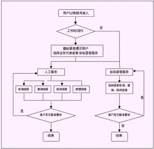 客戶也可以選擇自動(dòng)語(yǔ)音服務(wù)方式,根據(jù)系統(tǒng)的語(yǔ)音提示輸入按鍵,選擇類(lèi)別,將自己所需要的服務(wù)要求以及自己的聯(lián)系方式信息以留言錄音的方式保存在系統(tǒng)中。系統(tǒng)同時(shí)還支持自動(dòng)傳真方式,客戶可以通過(guò)傳真機(jī)進(jìn)入本系統(tǒng),通過(guò)按鍵選擇傳真方式,將所需要的服務(wù)要求等的文本內(nèi)容傳真給系統(tǒng),系統(tǒng)自動(dòng)接受并存入數(shù)據(jù)庫(kù)。