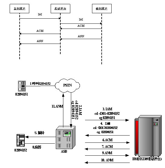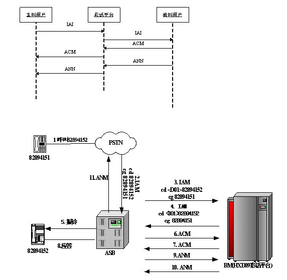 被叫彩話是指呼叫到達(dá)被叫方交換機時,被叫方交換機檢測被叫擁護(hù)是否設(shè)置彩話業(yè)務(wù),如果沒有甚至彩話業(yè)務(wù),則直接向被叫用戶發(fā)起呼叫,當(dāng)被叫用戶摘機應(yīng)答后將雙方連接起來通話;如果設(shè)置了彩話業(yè)務(wù),則被叫方交換機將做兩個動作:第一為向被叫用戶發(fā)起呼叫,第二為向彩話平臺發(fā)起呼叫,當(dāng)被叫用戶摘機應(yīng)答后,在被叫交換機上將產(chǎn)生一個會議,將主叫用戶、被叫用戶和彩話平臺加入到會議中。