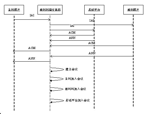 步驟6:被叫用戶端交換機產(chǎn)生會議,將主叫用戶、被叫用戶、彩話平臺加入到會議中