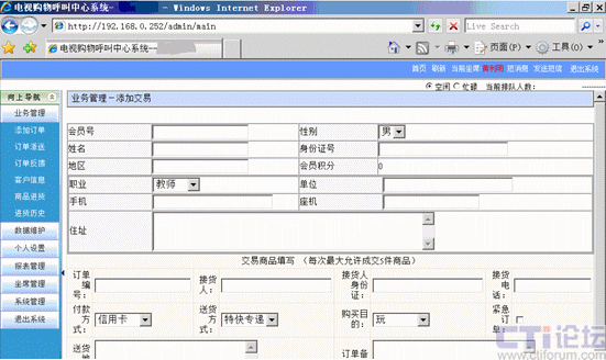 隨著電視購物規(guī)模的不斷擴(kuò)大、行業(yè)競(jìng)爭的不斷加劇、營銷成本的不斷攀升,開展電視購物的商家對(duì)提高電話銷售的成交率尤為關(guān)注。當(dāng)電視媒體廣告播出以后,如何抓住那些用大筆的廣告費(fèi)吸引進(jìn)來的消費(fèi)者,就成為電視購物經(jīng)營者關(guān)注的焦點(diǎn)。特別是呼叫業(yè)務(wù)大部分是波浪式呼叫,大量的業(yè)務(wù)和信息來不及處理,僅靠現(xiàn)有的設(shè)備和人員使用普通電話的模式,已經(jīng)不能滿足現(xiàn)代電視購物行業(yè)的需要。