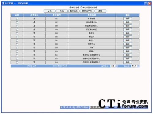 同時(shí)具有審核和管理權(quán)限的用戶,可以對(duì)所有單位的人員及通訊信息進(jìn)行維護(hù)。