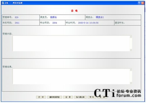 2)用戶開(kāi)始通話,可以實(shí)時(shí)顯示主叫號(hào)碼、被叫號(hào)碼、坐席工號(hào)、坐席分組號(hào)碼、通話時(shí)間、日期等信息以及磁盤(pán)容量設(shè)備使用情況等信息。
