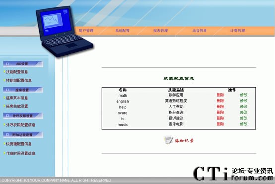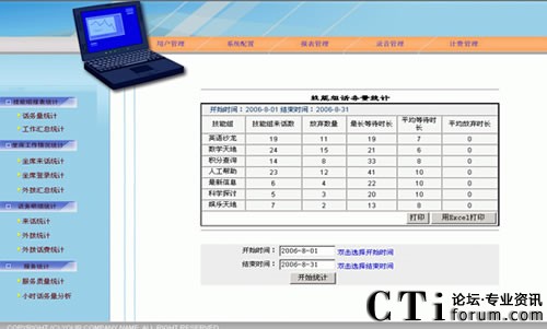 CTI控制是整個呼叫中心呼叫控制的樞紐。所有類型的呼叫控制都由CTI控制服務(wù)器進(jìn)行控制,CTI服務(wù)器將各種類型的呼叫進(jìn)行統(tǒng)一的控制,以便進(jìn)行統(tǒng)一ACD排隊、管理、統(tǒng)計和監(jiān)控。