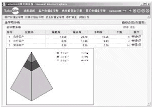 TurboCRM系統(tǒng)中的客戶價值金字塔,支持對分析結果中呈現(xiàn)的某個價值區(qū)間的客戶群進行共性特征的抽象和提煉,幫助企業(yè)決策人發(fā)現(xiàn)重要客戶之間的共性,從而有助于尋找和挖掘最有價值的客戶(如表4、表5所示)。這一功能可以將零散的數(shù)據(jù)轉化為知識,迅速地為企業(yè)決策人提供有效幫助。