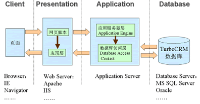 為了滿足移動辦公和分布式管理的需求,CRM系統(tǒng)將更多采用基于Browser-Server架構(gòu)的多層結(jié)構(gòu)。B/S結(jié)構(gòu)的特點是在客戶端使用標(biāo)準(zhǔn)的Web頁面瀏覽器(如Internet Explorer等),不需安裝特殊的應(yīng)用程序,減少了升級和維護(hù)的難度;所有的業(yè)務(wù)數(shù)據(jù)都保存在Server端,確保了數(shù)據(jù)的安全;在通訊方面,由于使用標(biāo)準(zhǔn)的HTTP協(xié)議,使得系統(tǒng)可以輕松的實現(xiàn)移動辦公和分布式管理。另外為了系統(tǒng)功能的可擴(kuò)展性,應(yīng)該采用將數(shù)據(jù)庫、應(yīng)用層及表現(xiàn)層分離的多層結(jié)構(gòu)。獨立的數(shù)據(jù)庫層便于支持多種數(shù)據(jù)庫系統(tǒng),將實現(xiàn)企業(yè)邏輯的應(yīng)用層獨立使業(yè)務(wù)邏輯的更新和擴(kuò)展更為方便,而當(dāng)需要支持手機(jī)、PDA等新的客戶端設(shè)備時只要對表現(xiàn)層進(jìn)行擴(kuò)充就可以實現(xiàn)。同時,這種多層結(jié)構(gòu)也可以采用負(fù)載均衡與集群等技術(shù)實現(xiàn)系統(tǒng)的高可用性和性能的平滑擴(kuò)展。