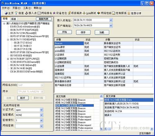 連接診斷功能實時分析顯示接入點同客戶端之間連接步驟的完成狀況,為分析網絡接入問題提供支持。