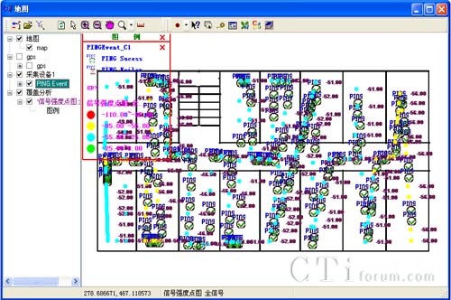 可以顯示GPS軌跡圖上的信號強度,載干比等參數覆蓋點圖及效果圖。