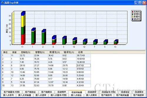 問題發(fā)現:通過實時流量的統(tǒng)計分析,我們發(fā)現在信道6,AP數量10個,目前某AP接入終端數為16,對某些終端的服務質量急劇降低,導致錯誤包過大。