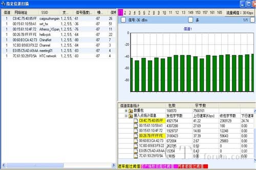 支持設備被動狀態(tài)下掃描802.11a/b/g/n所有信道,也可選擇信道進行掃描。統(tǒng)計匯總AP、STA、AdHoc等設備的數量,統(tǒng)計網絡中SSID網絡數量,能提供信道的信號強度、噪聲、信噪比、干擾參數指標等信息。