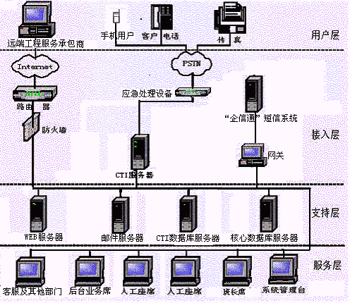 整個客戶服務(wù)系統(tǒng)的網(wǎng)絡(luò)結(jié)構(gòu)圖如下: