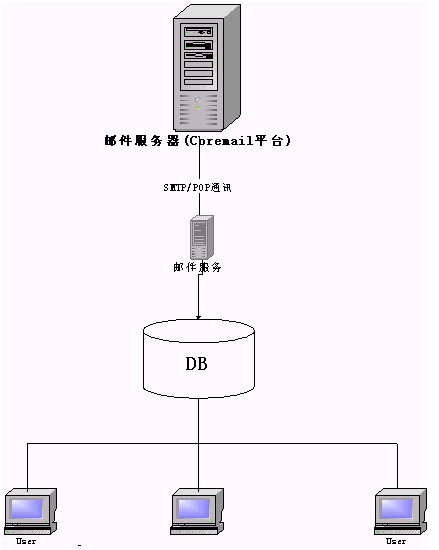 系統(tǒng)郵件服務(wù)連接郵件服務(wù)器與DB數(shù)據(jù)庫,主要進(jìn)行郵件的接收與發(fā)送,并分配郵件到對應(yīng)的User,同時實時的監(jiān)測郵件的狀況,通報給User最新的郵件信息.