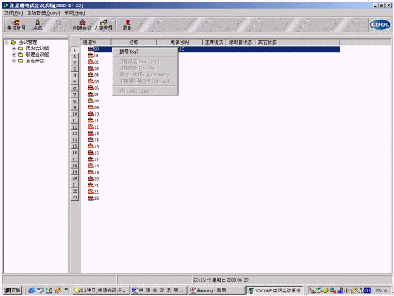 2、系統(tǒng)主界面的右邊樹(shù)型結(jié)構(gòu)是電話呼出或接入的動(dòng)態(tài)瀏覽器,包括通道號(hào),名稱,電話號(hào)碼等等。